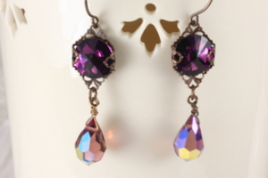 These are incredible earrings. The luster and shine of the Swarovski rivolis and Preciosa Crystal teardops are unmatched. These are a wonderful size for casual bling or a special occasion. Created with American made Vintaj Brass these earrings measure 2 1/4 inches from the tops of the earwires to the bottoms of the teardrop crystals.
